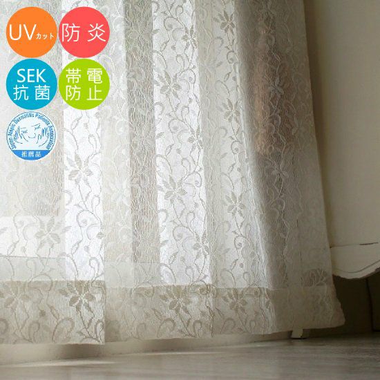 機能:抗菌・防臭・速乾・アトピー推奨・プライバシー保護・ウォッシャブル・防汚加工・UVカット(80%)防炎(ラベル付き) 組成:ポリエステル100%(東レ開発繊維「シルックラフール」使用) 仕様:1.5倍ひだ