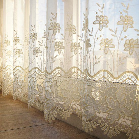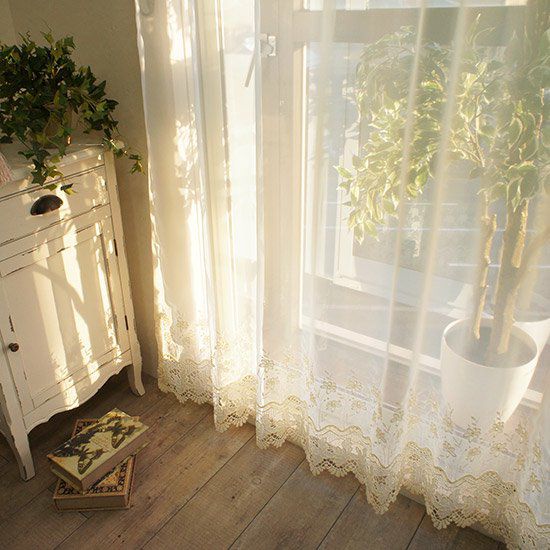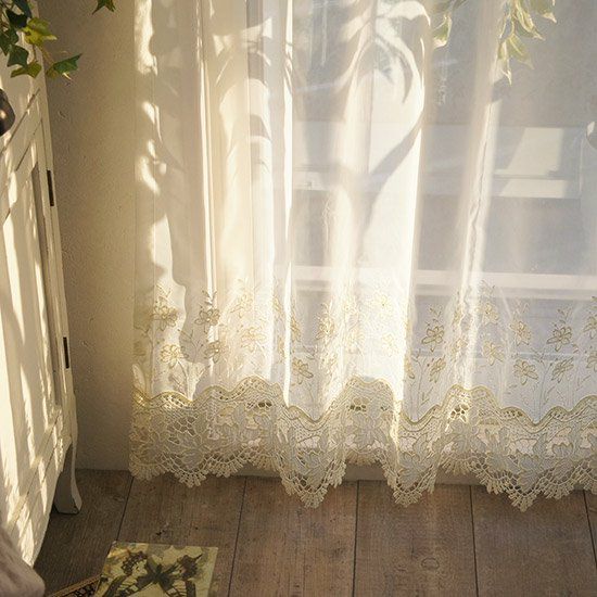 繊細で気品あふれる刺繍レースが窓辺をエレガントに彩ります。