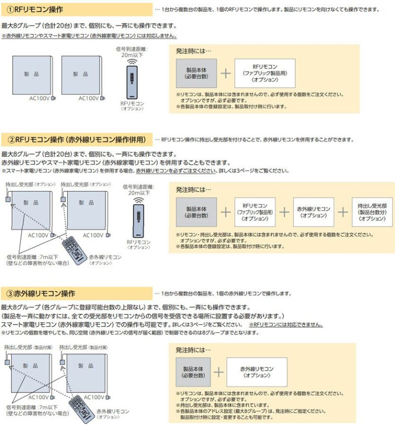 ★リモコンをすでにお持ちの場合や1つのお部屋で複数台をご使用の場合など、リモコンが不要な場合は、