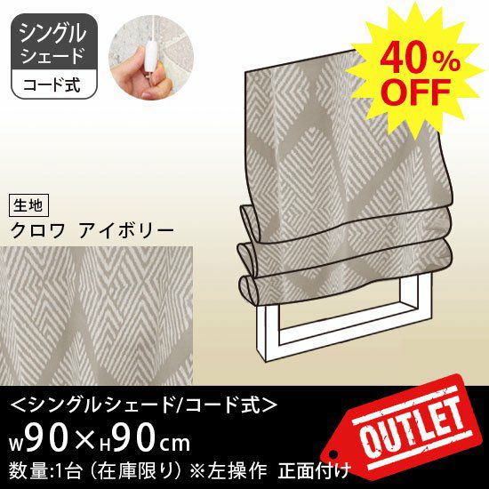 ★40%OFF OUTLET★プレーンシェード <シングルタイプ/コード式 ※左操作 生地:クロワベージュ>(横幅90×丈90)■代引き不可【No.3】