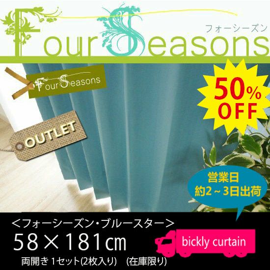 ★50%OFF OUTLET★【 Four Seasons 】100サイズ・国産・48色から選ぶ1級遮光カーテン <フォーシーズン ブルースター>(横幅58×丈181)2枚入り1セット 【No.105】