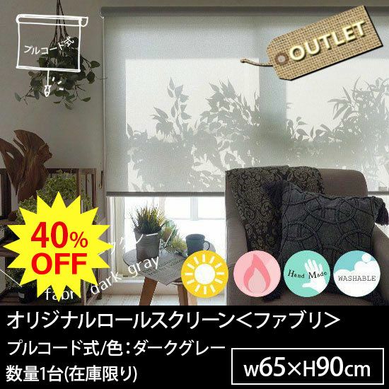 ★OUTLET★オリジナルロールスクリーン<ファブリ ダークグレー>(横幅65×丈90)プルコード式 ※代引不可 1台【No.8】