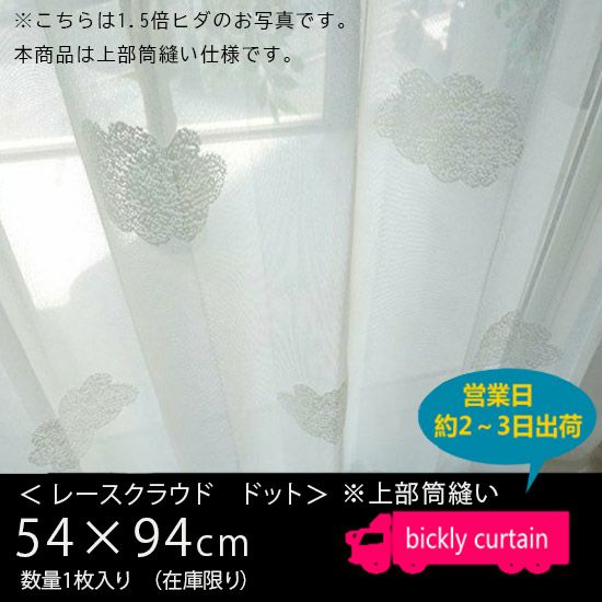 4. ★OUTLET★ 透け感のある国産ミラーレース・ウォッシャブル <レースクラウド ドット> (横幅54×丈94)・上部筒縫い・1枚入り 【No.144】