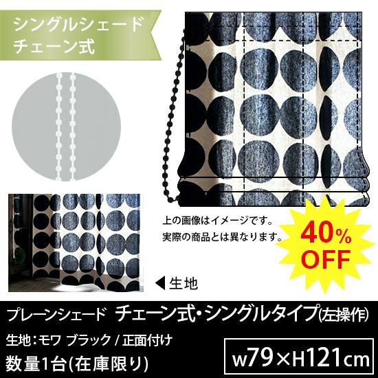 ★OUTLET★プレーンシェード<シングルタイプ・チェーン式>生地:モワ ブラック・左操作・正面付け(幅79×丈121cm)1台【No.80】※代引不可