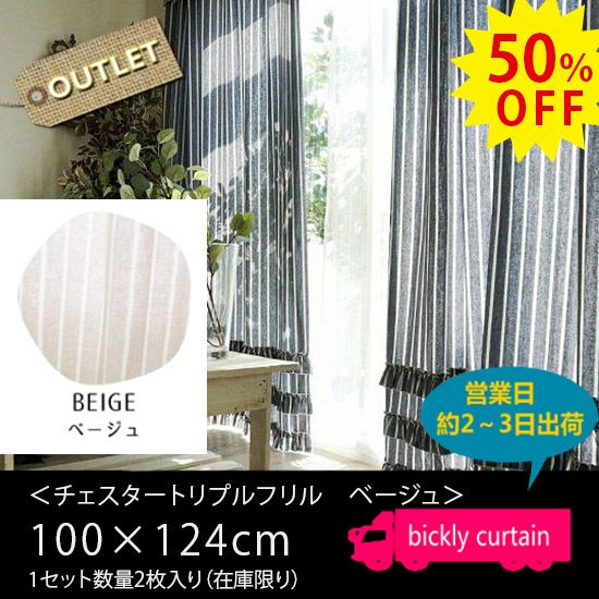 ★50%OFF OUTLET★<チェスター トリプルフリル ベージュ>(横幅100×丈124)2枚入り1セット1セット【No.116】