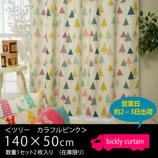 ★OUTLET★サイズ豊富な2級遮光の可愛い子供部屋カーテン 【ツリー カラフルピンク】(横幅140×丈50)2枚入り1セット【No.123】