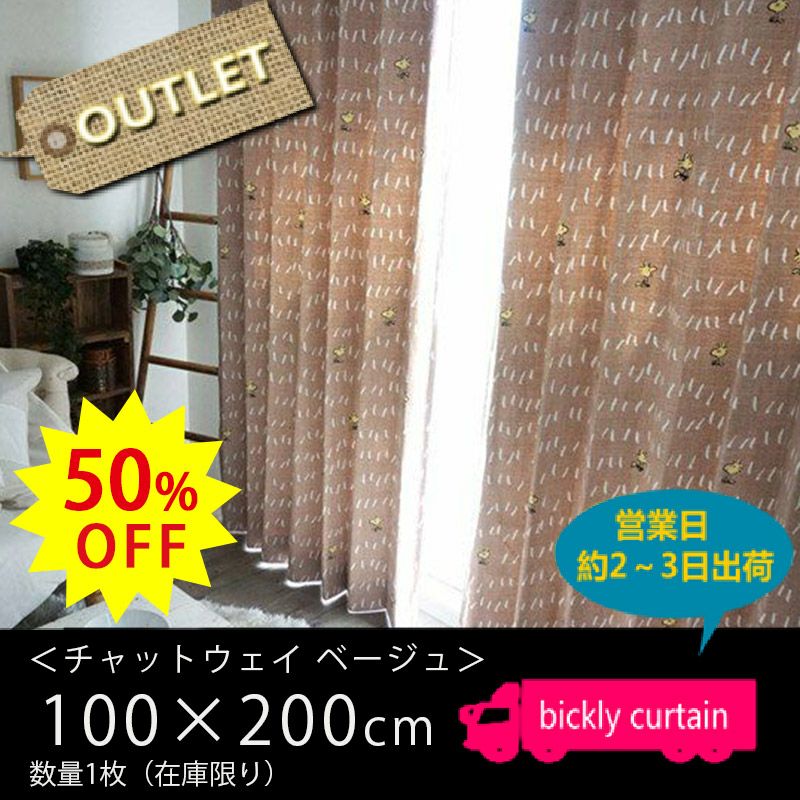 ★OUTLET★【PEANUTS】スヌーピーのお話PEANUTSの世界がデザインされたカーテン≪Chat way/チャットウェイ ベージュ≫(横幅100×丈200)1枚入り 【No.125】