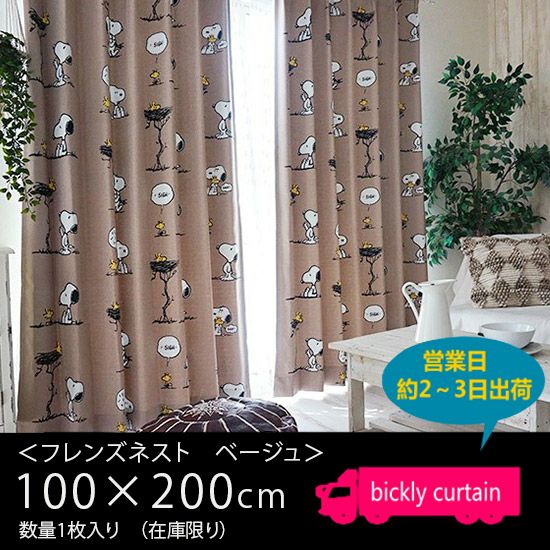 ★OUTLET★【PEANUTS】スヌーピーのお話PEANUTSの世界がデザインされたカーテン ≪Friend's nest/フレンズネスト ベージュ≫(横幅100×丈200)1枚入り 【No.127】