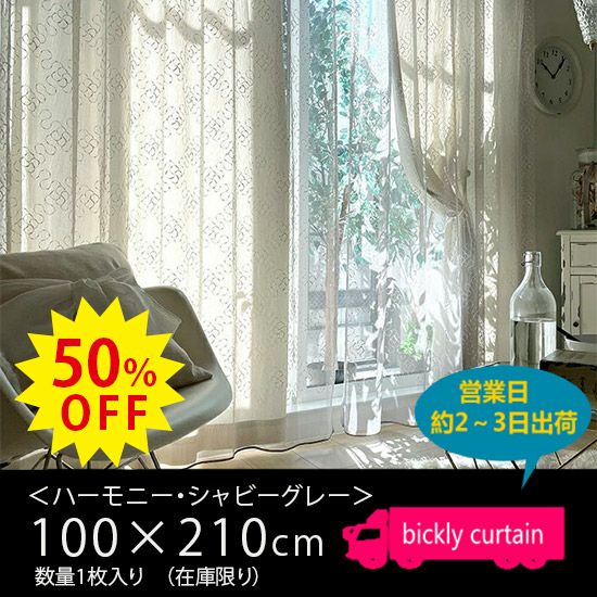 ★50%OFF OUTLET★●当店オリジナル●【トルコ刺繍レースカーテン】■ ウォッシャブル <ハーモニー シャビーグレー -Harmony->(横幅100×丈210)1枚入り 【No.140】