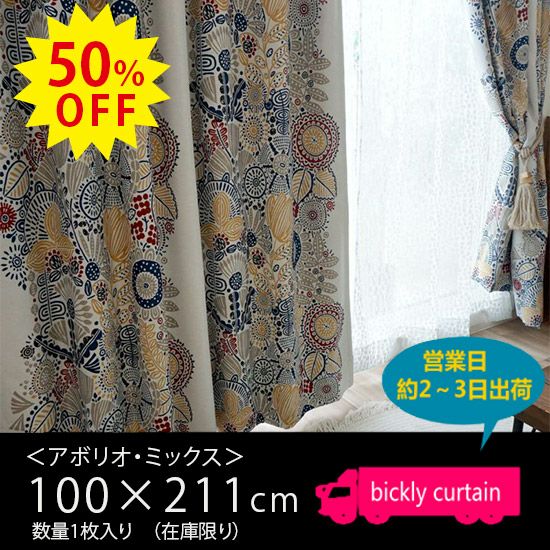 ★50%OFF OUTLET★【北欧VINTAGE】遮光1級・形状記憶付きカーテン <アボリオ ミックス>(横幅100×丈211)1枚入り 【No.140】