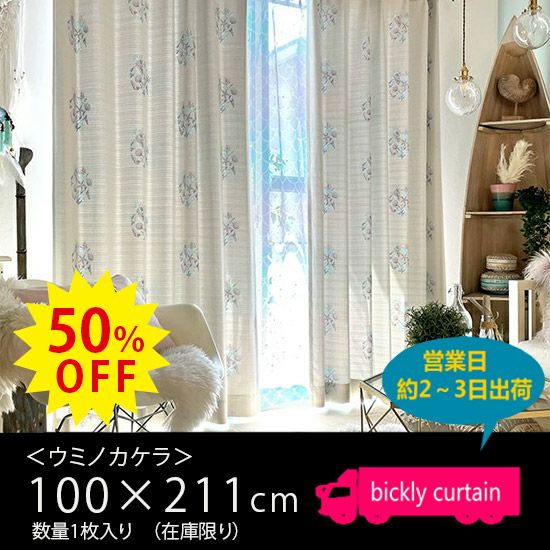 ★50%OFF OUTLET★【 MARINE & PIER 】 西海岸テイストの爽やかなデザインカーテンシリーズ・2級遮光 <ウミノカケラ>(横幅100×丈211)1枚入り 【No.140】
