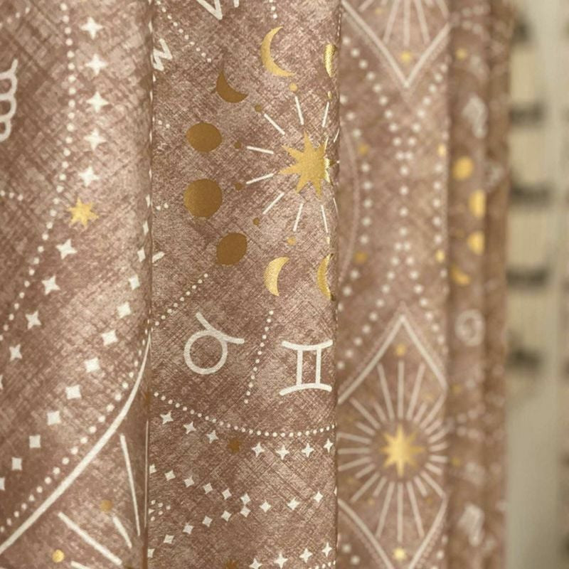 星や月のモチーフには箔プリントを施し、光の当たり方でキラキラと輝きます。