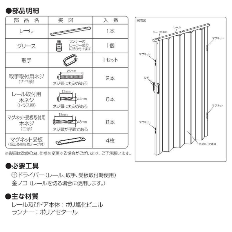 付属品:レール取付用木ネジ(ナベビス)など