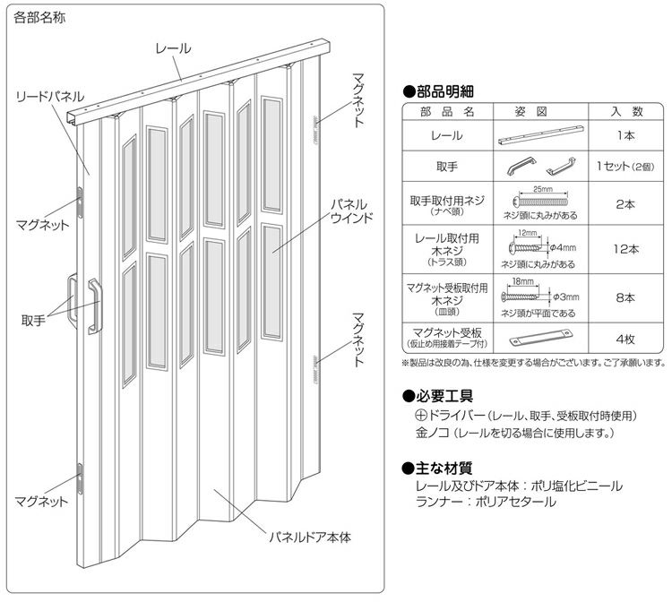 付属品:レール取付用木ネジ(ナベビス)など