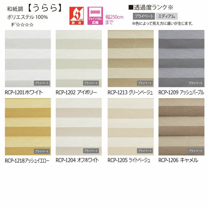 和紙調の生地で透け感を抑えた【うらら】は広幅にも対応。