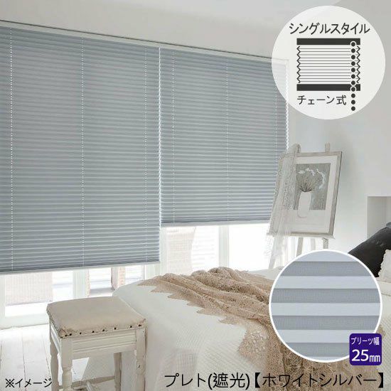 取り付けは3WAY! 枠の内側に「天井付け」、枠の正面からの「正面付け(推奨)」、カーテンレールに取り付けも可能!※ 【商品詳細】 組 成:ポリエステル100% 機 能:遮光(色により級数は異なる)、防炎、ホルムアルデヒド対策品 仕 様:シングルスタイル、チェーン式 プリーツ幅:25mm 付属品:取付金具(ブラケット・ネジ) 必要工具:プラスドライバー 原産国:日本製 ※生地は「遮光生地」ですが商品の構造上、完全に光を遮ることはできません。