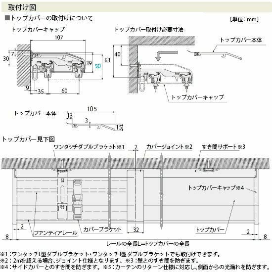 ・カバージョイント:1.00m・1.82m・2.00m=なし、2.73・3.00m=1コ ・トップカバーキャップ(左右)1組