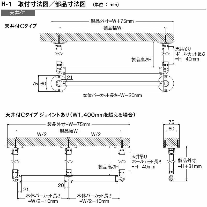 TOSO【ハンギングバー H-1】<正面付 Cタイプセット>