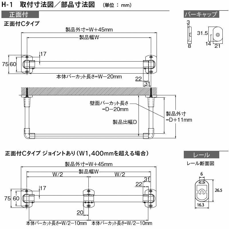 TOSO【ハンギングバー H-1】<正面付 Cタイプセット>