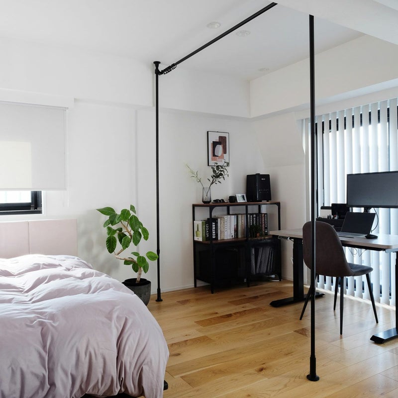 天井と床につっぱるたけで取付けができ、ビス止め不要でお取り付けが可能です。壁や天井に穴をあけずに取付けができるので、賃貸物件でもOK!