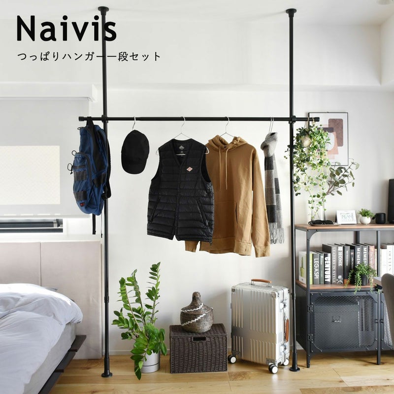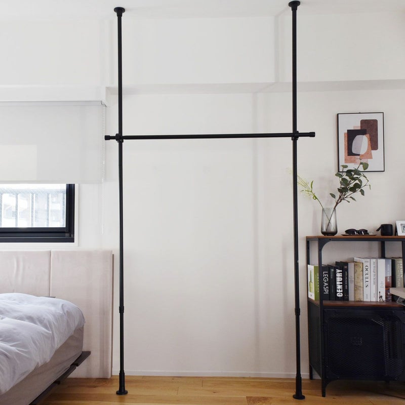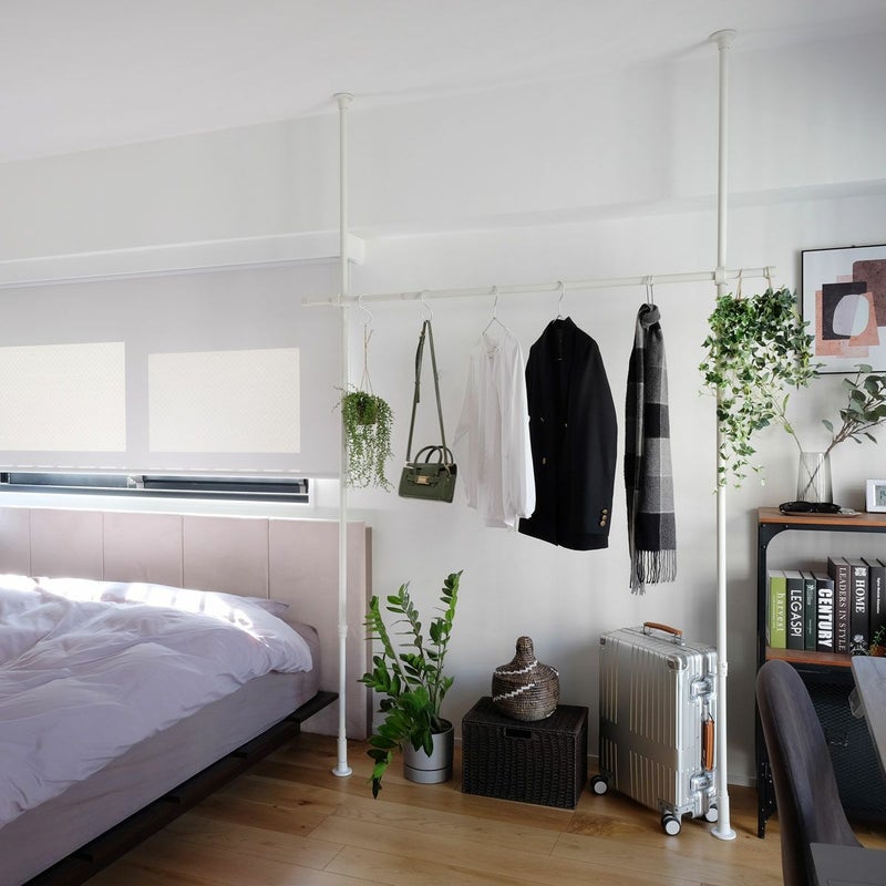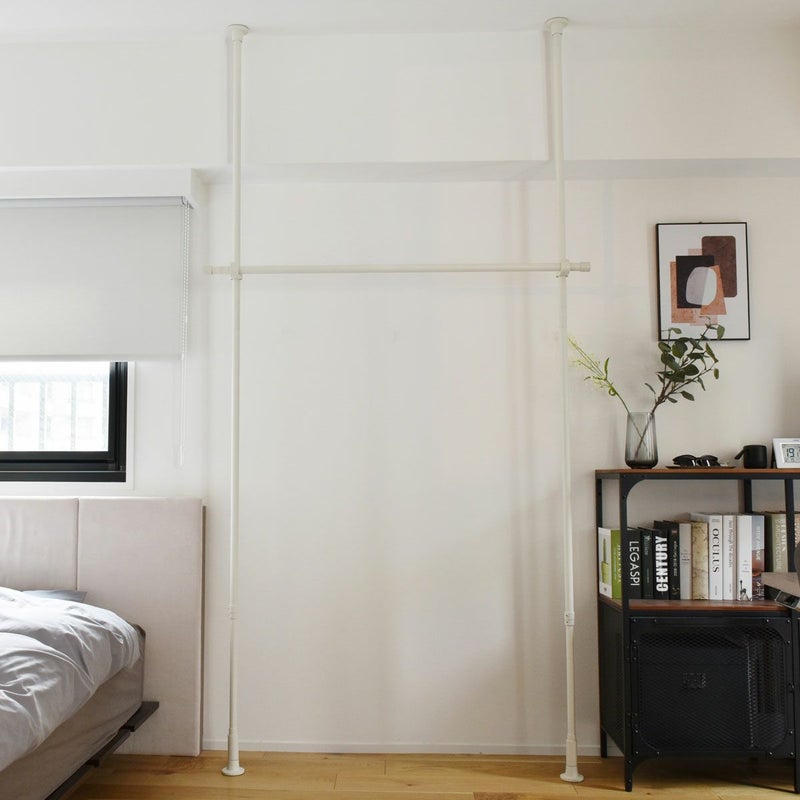 天井と床につっぱるたけで取付けができ、ビス止め不要でお取り付けが可能です。壁や天井に穴をあけずに取付けができるので、賃貸物件でもOK!