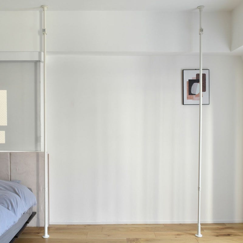 天井と床につっぱるたけで取付けができ、ビス止め不要でお取り付けが可能です。壁や天井に穴をあけずに取付けができるので、賃貸物件でもOK!