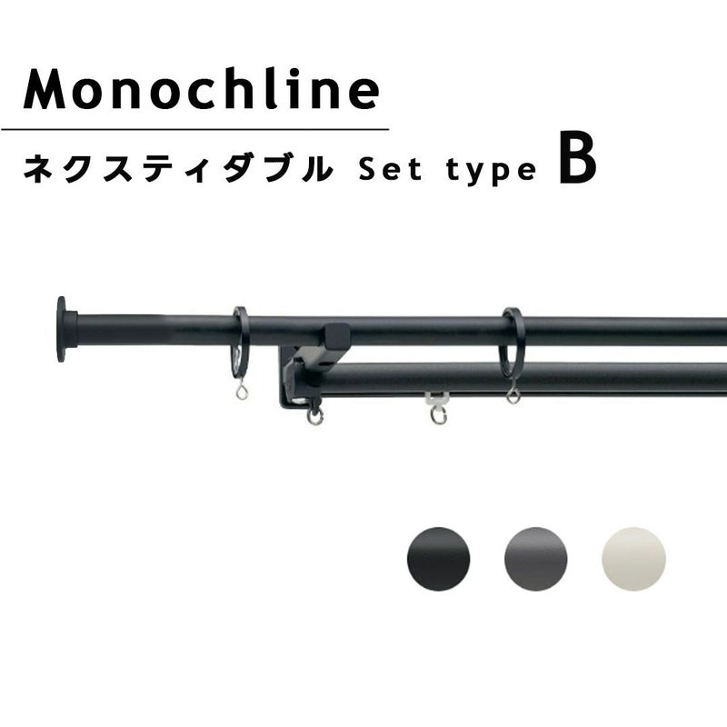 送料無料!モノクロシンプルでおしゃれなカーテンレール<モノクライン>正面付ネクスティダブル【Aセット】~3M対応※代引不可