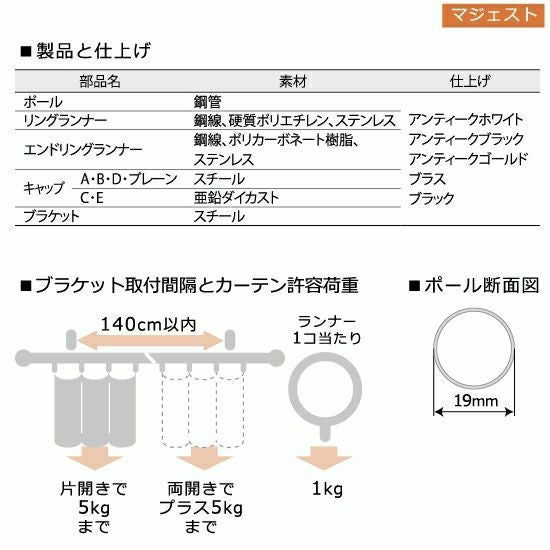 送料無料★日本製・エレガントなクラシカルデザインの装飾レール<Majest - マジェスト>ブラケットスルーブラス・ブラック系 シングル正面付【Eセット】~3M対応※代引不可 代引不可 送料無料 販売価格 ¥ 10,670 税込 お気に入りに登録する