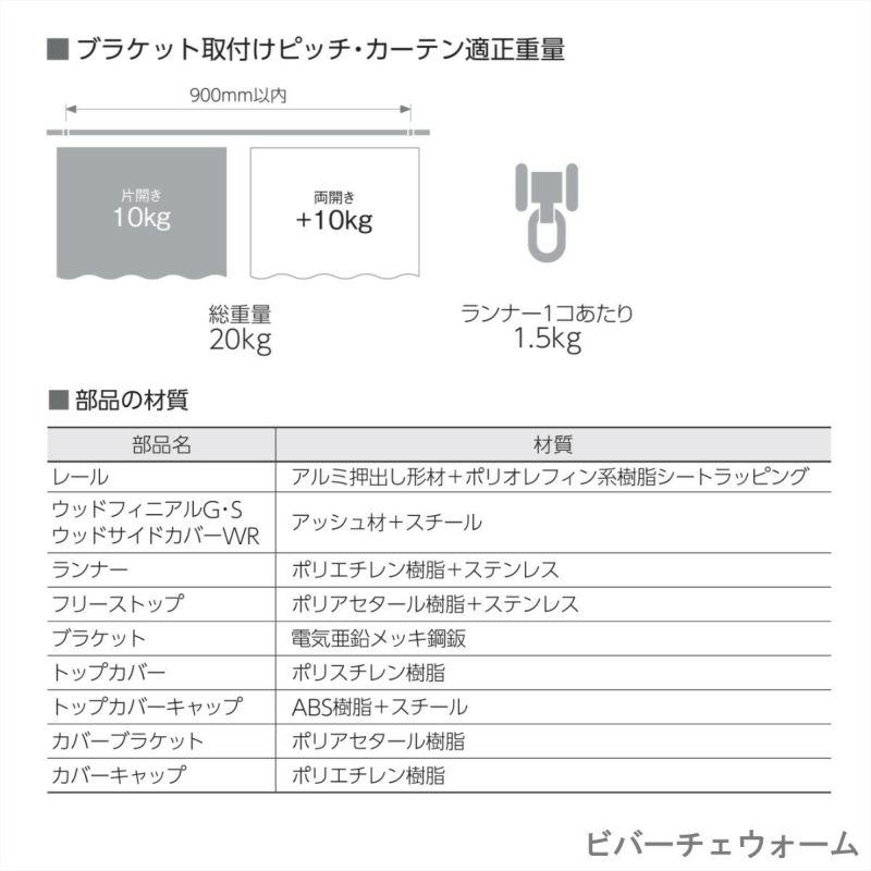【商品詳細】 ■付属品 シングルタイプ ・ レール:2.0m=2.03m×1本、3.0m=3.03m×1本 ・ フィニアル:2コ ・ 共通ランナー: 2.0m=20コ、3.0m=30コ ・ 共通マグネットランナー(両開):1組 ・ フリーストップ:2コ ・ ワンタッチロングシングルブラケット:2.0m=3コ、3.0m=5コ ・取付ネジ ダブルタイプ ビバーチェ ・レール:2.0m=2.03m×1本、3.0m=3.03m×1本 ・フィニアル:2コ ・共通ランナー:2.0m=20コ、3.0m=30コ ・共通マグネットランナー(両開):1組 ・フリーストップ:2コ ・ワンタッチダブルブラケット:2.0m=3コ、3.0m=5コ ・取付ネジ ファンティア ・レール:2.0m=2.0m×1本、3.0m=3.0m×1本 ・キャップストップ:2コ ・共通ランナー:2.0m=18コ、3.0m=26コ ・共通マグネットランナー(両開):1組 ■生産国 : 日本 【ご注意事項】 ※こちらの商品は【正面付け専用】のセットとなります。 ※サイドカバー・フィニアル部分は天然素材を使用しているため、レール本体と色合いや寸法が多少異なる場合がございます。 ※取付ネジ付きの長さが不足する場合は、設置状況に応じたものを別途ご用意ください。 ※金ノコギリなどをお使いいただきますと、ご自宅でもレールカットいただけます。 ※ダブルレールの後ろレールのカット寸法は、ご指定がない限りおすすめサイズとなります。エアコン位置などによりご指定が必要な場合は、通信欄に各サイズをご記入ください。 ※ご不明点がございます場合はお気軽にお問い合わせくださいませ。→0120-390-790