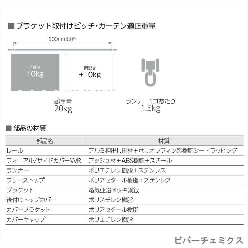 ※サイドカバー・フィニアル部分は天然素材を使用しているため、レール本体と色合いや寸法が多少異なる場合がございます。