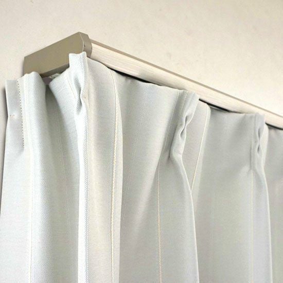 既成サイズのカーテンを使用する場合、カーテンのフックの間隔が広いため、側面のカーテンがダブついて膨らみます。