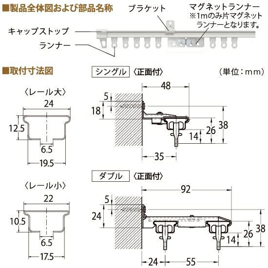 サイズ調整が自由な伸縮性カーテンレールです。お引越しでお窓のサイズが変わっても、調整してご利用いただけます。 走りの軽い車式ランナー採用でカーテンの開閉もスムーズ。 正面付けと天井付けの2パターンでお取付け可能!ブラケットを使わない天井付けは間仕切り用のレールとしてもおすすめです。