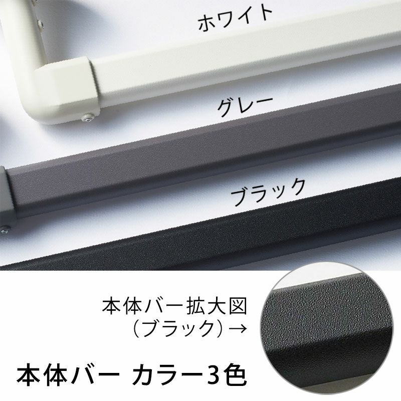本体バーはフィルムラッピングにより傷やサビがつきにくく、ハンガーなどを掛けても滑りにくい加工になっています。