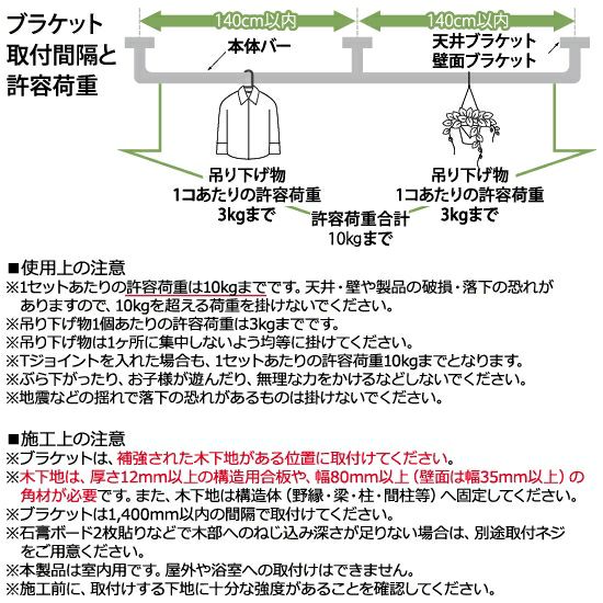 ハンギングバーH-1は室内物干しだけでなく、収納やディスプレイなど多用途に使えるインテリアバーです。