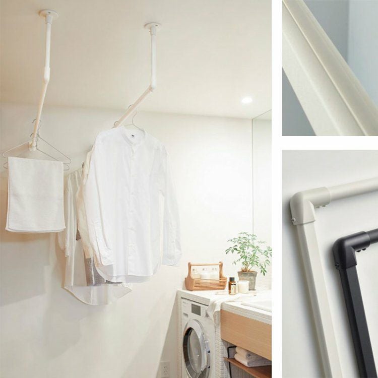 ハンギングバーH-1は室内物干しだけでなく、収納やディスプレイなど多用途に使えるインテリアバーです。