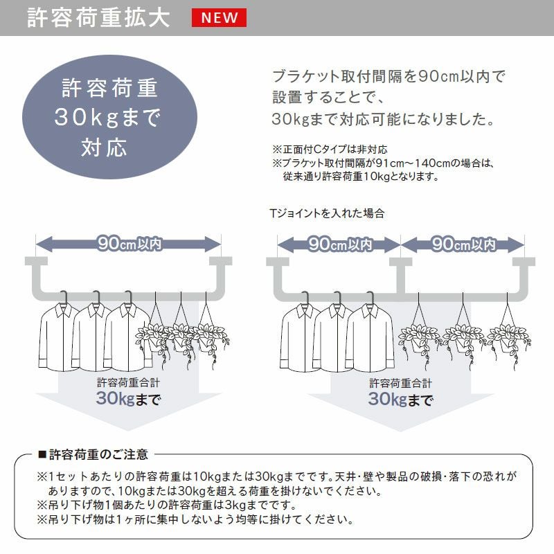 本体バーはフィルムラッピングにより傷やサビがつきにくく、ハンガーなどを掛けても滑りにくい加工になっています。