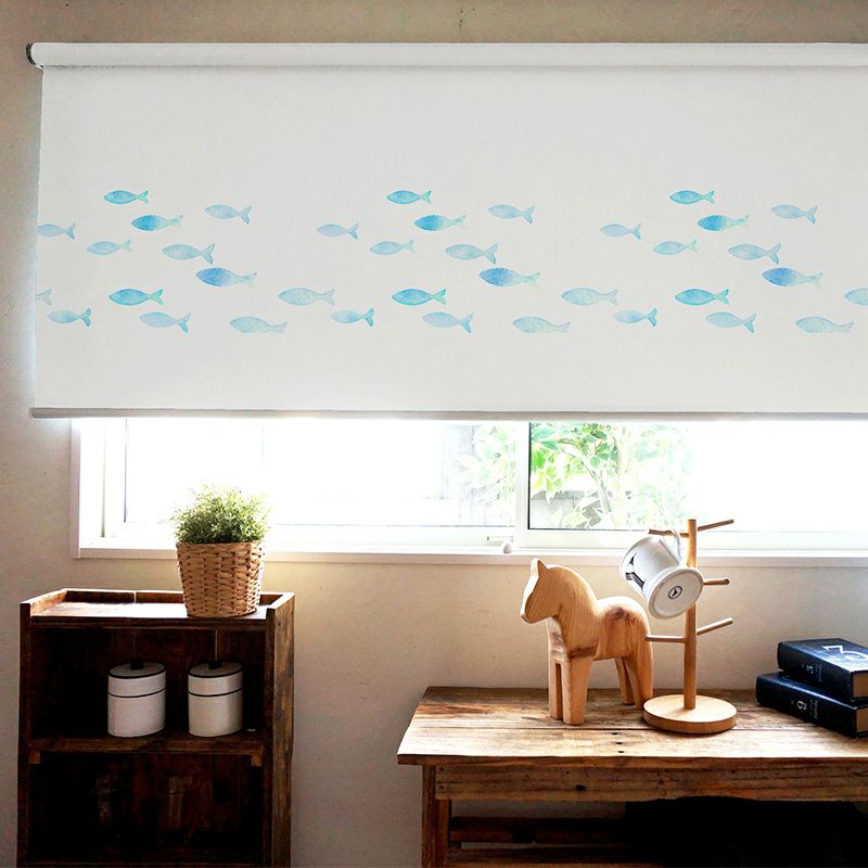 4. 『激安』オリジナルデザインロールスクリーン | サイズオーダーOK<ドリームパレット フィッシュフィッシュ> プルコード式※代引不可