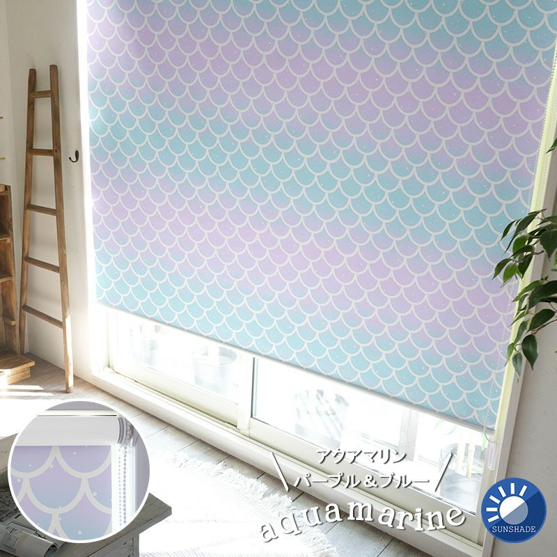 『激安』デザイン遮光のつっぱりロールスクリーン・特許取得済 <ドリームパレット アクアマリン パープル&ブルー> チェーン式※代引不可