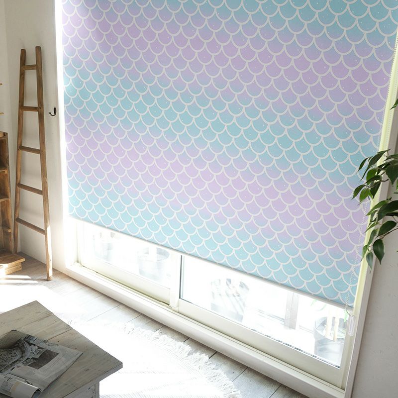 4. 『激安』デザイン遮光のつっぱりロールスクリーン・特許取得済 <ドリームパレット アクアマリン パープル&ブルー> チェーン式※代引不可