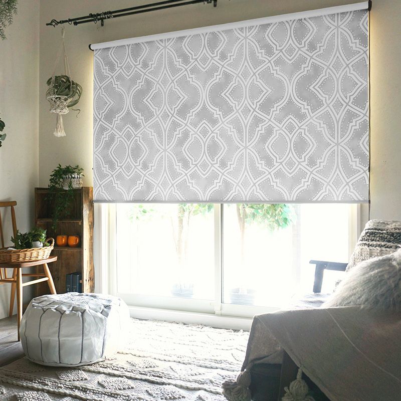 ●ロールスクリーン専用生地にカーテンと同じデザインをプリントしたロールスクリーンです。