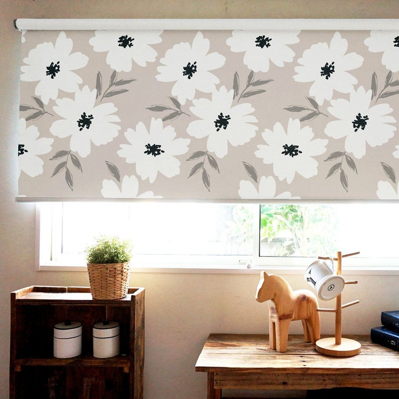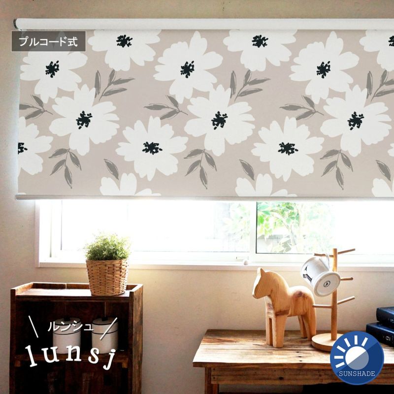 ●ロールスクリーン専用生地にカーテンと同じデザインをプリントしたロールスクリーンです。