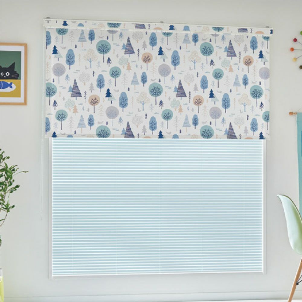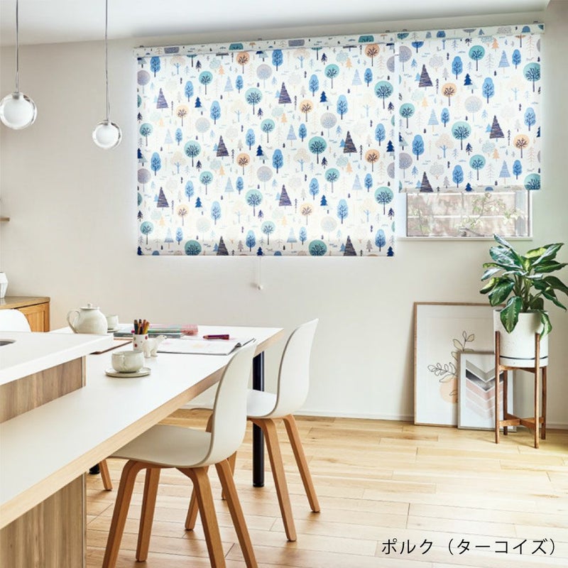 ▼アルミブラインドなど異なるアイテムもカラーを合わせることで統一感が出ます。ラルクシールド ポルク(ターコイズ)※背面のアルミブラインドは商品に含まれません。