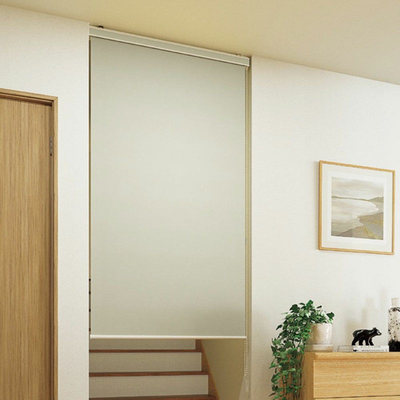 ▼リビング階段の開口を仕切ると、上下階の空気の流れを抑えることができ、省エネ効果が期待できます。 ラルクシールド ビブレ(モカ)※画像はオプション仕様の「逆巻き」です。加算価格不要で変更可能です。ご希望の場合はお問い合わせください。