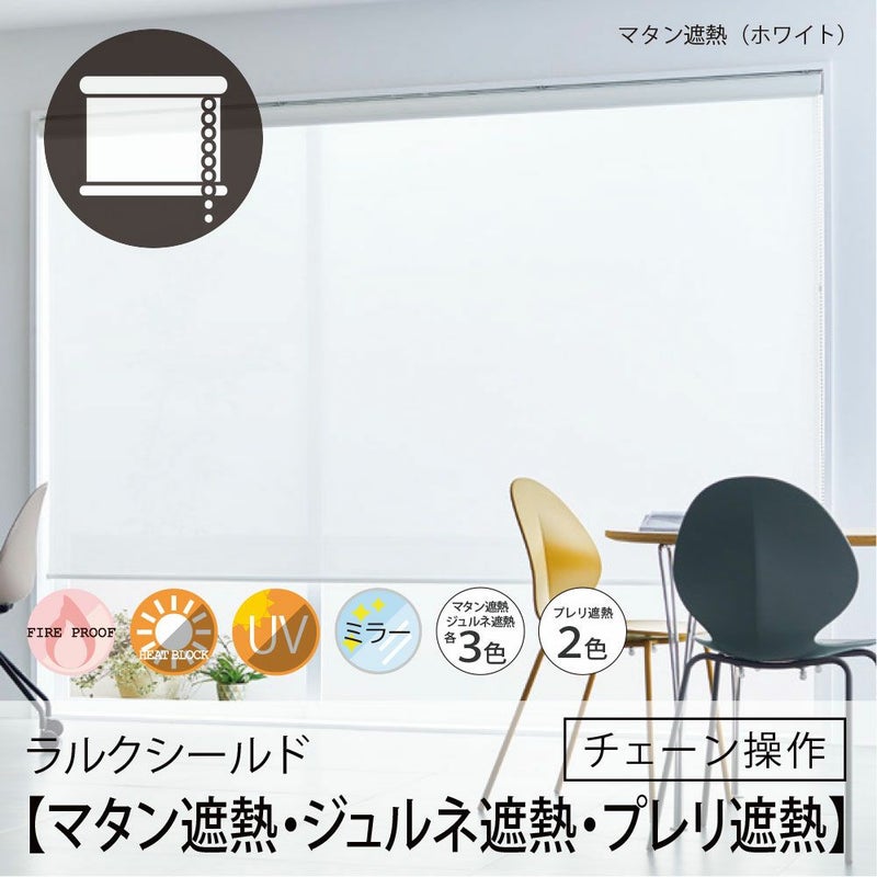 【商品詳細】 組 成:ポリエステル100% 機 能:防炎・遮熱・ホルムアルデヒド対策品 仕 様:チェーン操作 取付方法:天井付け・正面付けに対応 付 属 品:取付金具(ブラケット・ビス※) 必要工具:プラスドライバー ※付属の取付ビス(木ネジ)はサービスビスとなります。ビスの長さが足りない場合は、別途設置場所に応じたものをご用意ください。 取付ビスについて詳しくはこちらをご参照ください。 取付方法や採寸・ご注文方法でご不明な点がありましたら、お電話ください!