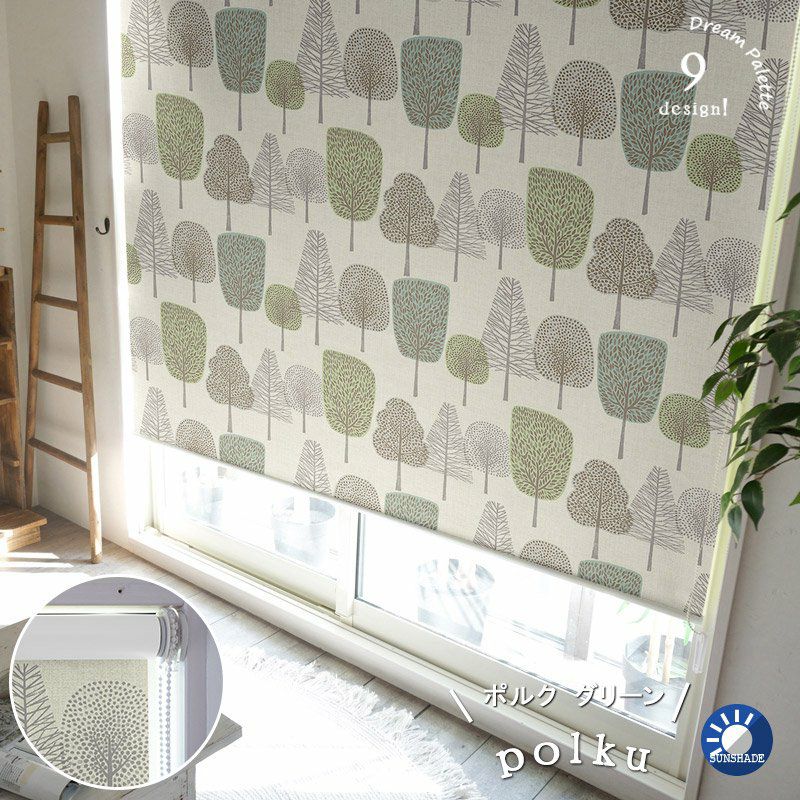●ロールスクリーン専用生地にカーテンと同じデザインをプリントしたロールスクリーンです。