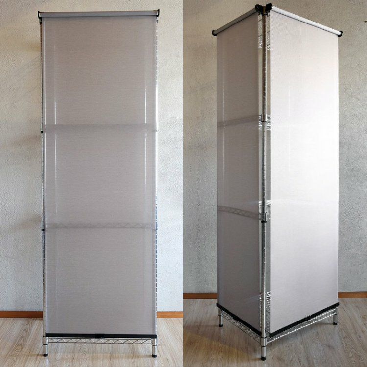 3. 送料無料★スチールラックに取付できるコードレスのコンパクトロールスクリーン【4WAY フォーウェイ<チョコレート>】※代引不可