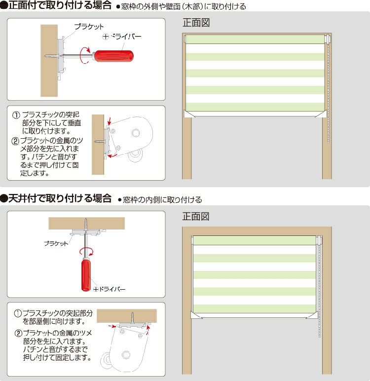 ※注意:ご注文時に「正面付け、または天井付け(カーテンレール付け)」かを、ご選択くださいませ。指定が無い場合は正面付け仕様でのお届けになります