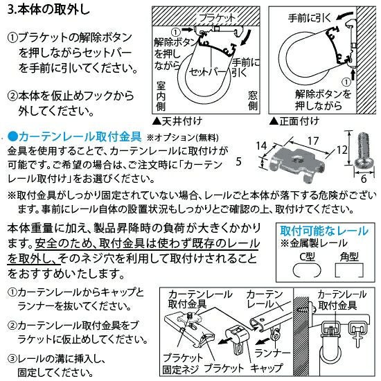 ■カーテンレールへの取付(※オプション/無料)も可能です。