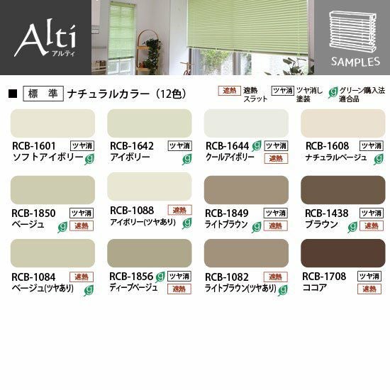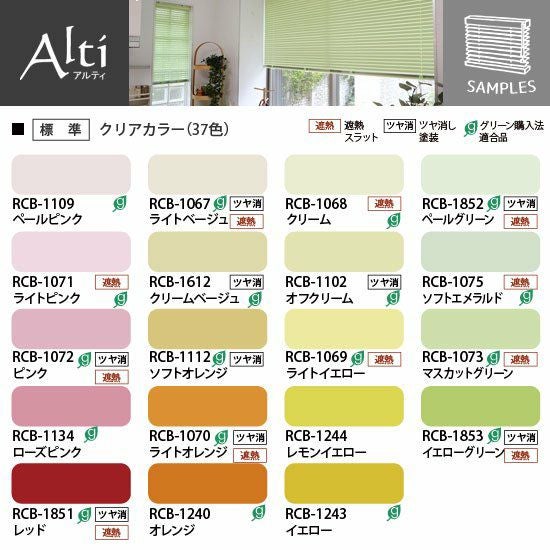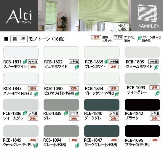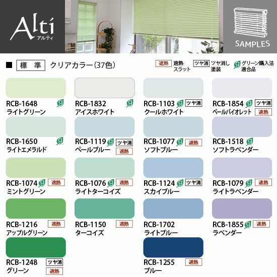 ※☆(番号の後ろにHがつく)は「光触媒遮熱スラット」です。色番号の数字部分が同じ標準スラットと同色ですが、コーティングによる(虹のような)干渉縞が見られる場合があります。