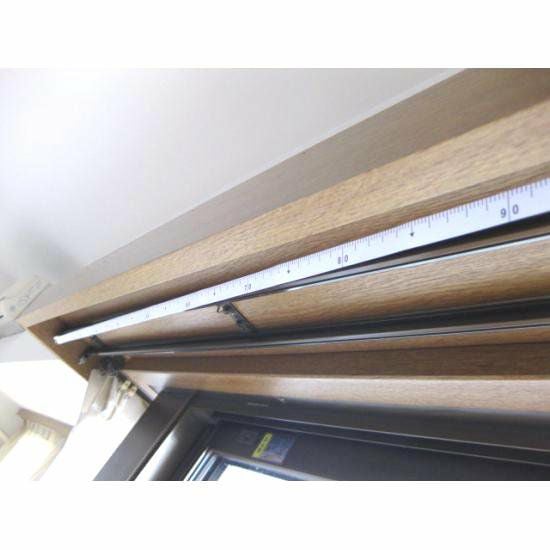 レールのランナーに引っ掛けるだけで簡単にカーテンのサイズが測れる優れものです。